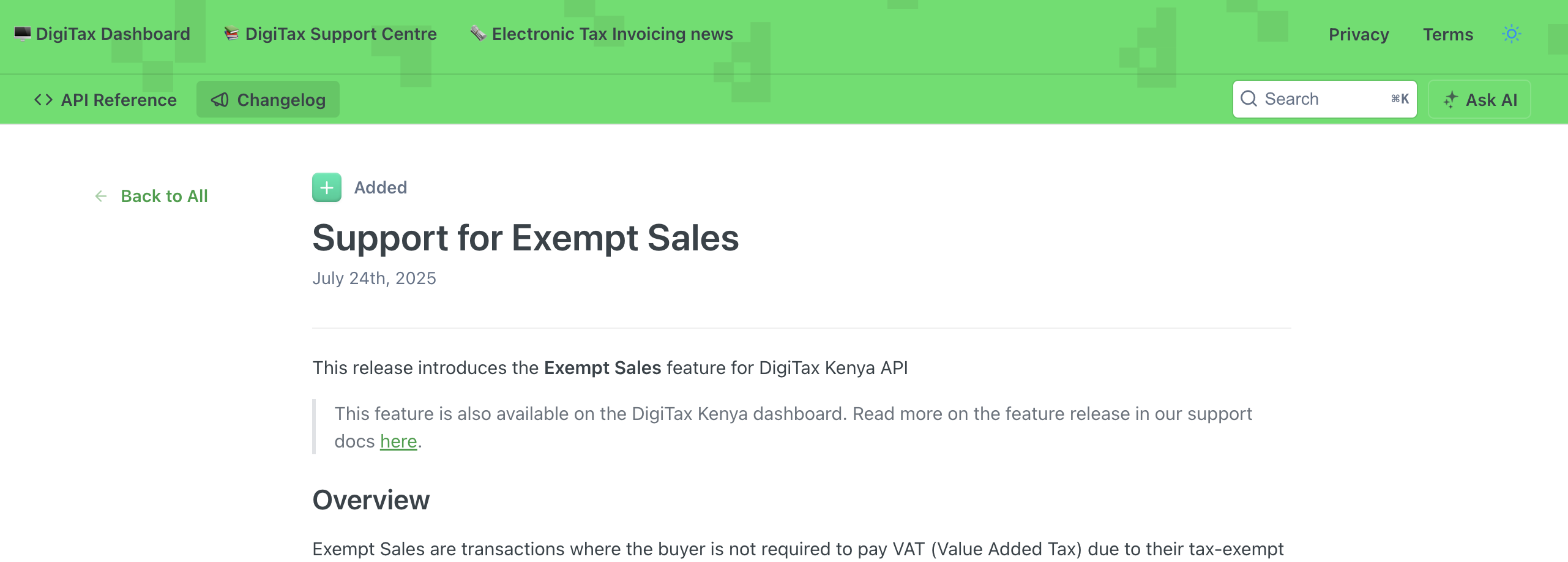Update AI support in DigiTax Kenya API docs